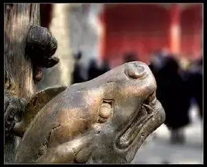 二林門前以甬道與大門相連接。此門為魯國故城的北門(龍門)遺址,元代至順二年(公元1331年)始建,明弘治七年(公元1494年),六十壹代孫、衍聖公孔弘泰添建門樓,“神門隘陋也,架以樓觀”。現存觀樓五間,重檐綠瓦歇山頂,無鬥拱,下檐四周有回廊,廊柱下置鼓礅柱礎。清雍正十年(公元1732年)、1964年重修。門前石欄內放有石獅壹對,均為明崇禎七年(公元1634年)雕刻。