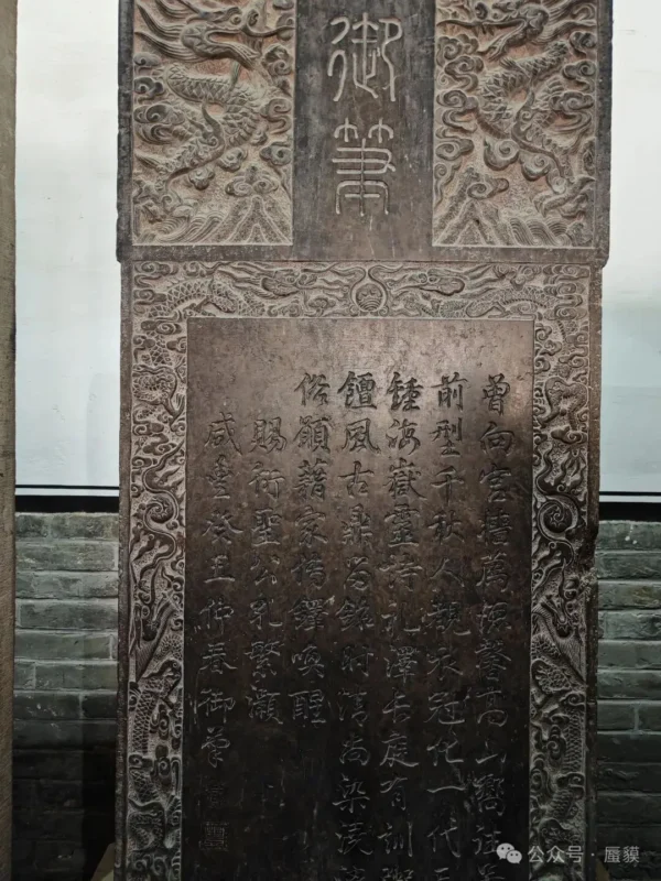 所以現在的孔府基本是個空殼,只剩下一些挪不走的石碑,比如上面兩張圖分別是咸豐帝和慈禧夫妻倆賞賜孔府的親筆書畫刻的碑,下面兩張圖分別是是乾隆帝賞賜孔府六世同堂的 “六代含飴” 匾額,比五世其昌更高一籌,以及我單方面的網際網路人脈 —— 小紅書上 “北京 C” 的太爺爺馮恕寫給親家孔令貽的對聯:“天下文章莫大乎是,一時賢者皆從之遊。”
