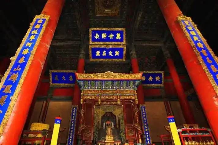 元明清三代,孔廟的地位達到頂峰,歷代帝王均對孔廟進行了多次修繕與擴建,其中以明清時期最為頻繁。明代永樂年間,永樂帝朱棣下詔修繕曲阜孔廟,耗時數年,將孔廟的建築等級提升至皇家規格,殿宇均採用黃琉璃瓦頂,紅牆紅柱,與故宮建築遙相呼應。清代康熙、乾隆年間,兩位帝王多次親臨曲阜祭孔,並下詔大規模擴建孔廟,其中乾隆帝先後八次東巡曲阜,每次都撥巨資修繕孔廟,並親自題寫匾額、詩文,使孔廟的規模達到歷史上的最大,形成了今日我們所見的宏偉格局。