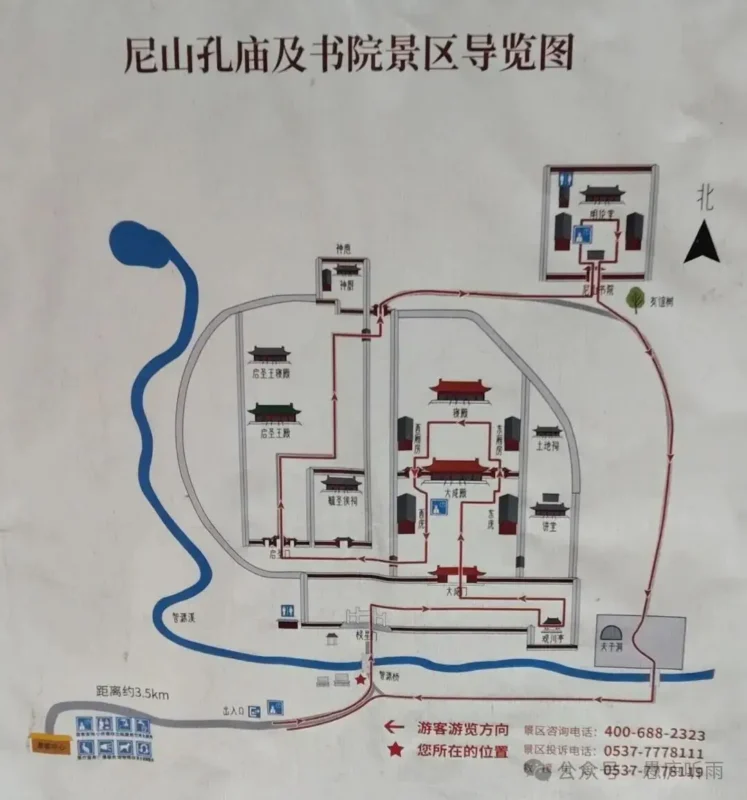 元月四日,正值新年第壹個工作日,另兩位學友壹早往回趕,我只能獨自去孔子誕生地尼山。賓館服務員很熱心,為我辦了139元的尼山遊包票,她說旅遊專車停在賓館斜對面的遊客服務中心,九點準時出發。車上配司服各壹人,開車時,誰料僅我壹個旅客。尼山孔廟書院景區今天好象也只為我壹人開放,這種待遇讓我驚得不輕!