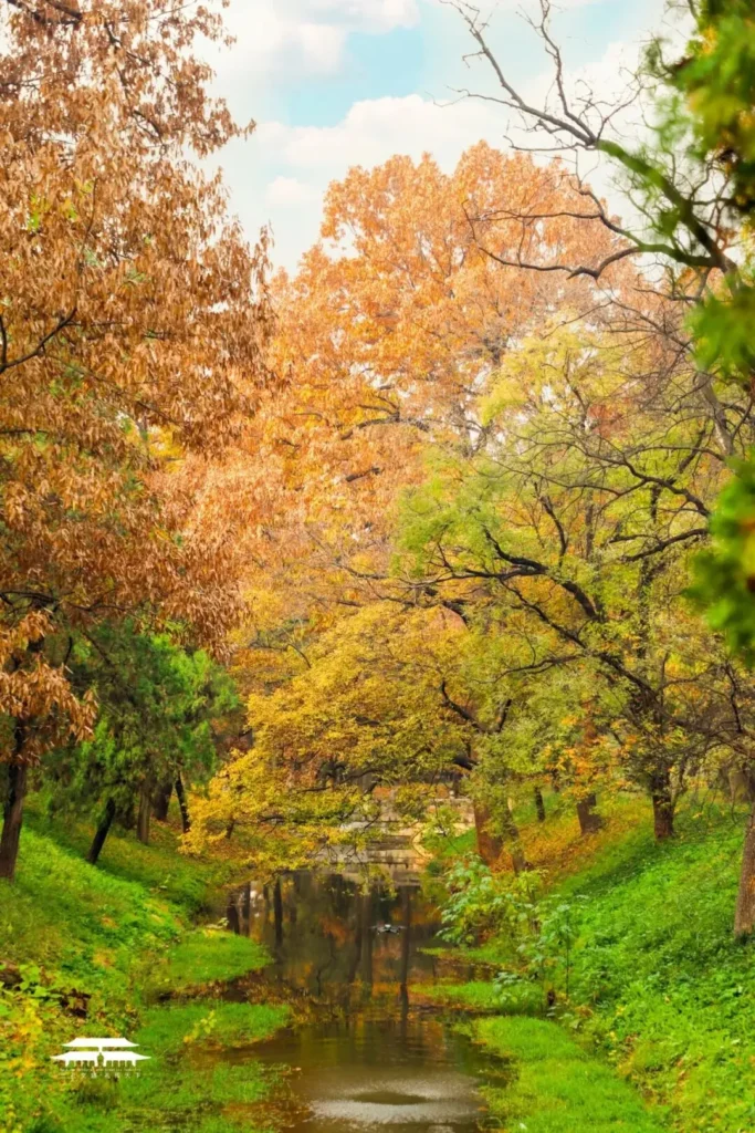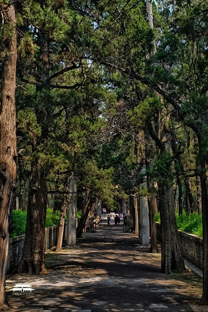 孔林內兩千八百餘畝古柏林,是秋日裡的另一重境界。秋風穿過枝椏,掀起陣陣松濤,仿佛在低語著千年的故事。洙水橋下流水潺潺,為這片靜地增添了幾分靈動,橋邊的神道上,碑碣巍巍聳立,表面的苔痕斑駁可見。站在橋上俯瞰流水東去,看著腳下歷經歲月磨礪的石板,正應了孔子「逝者如斯夫」的感嘆,成為感悟時光流逝的絕佳之地。