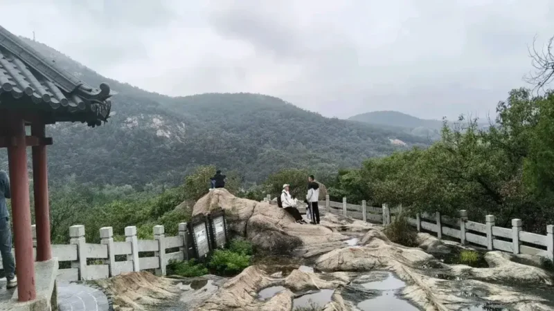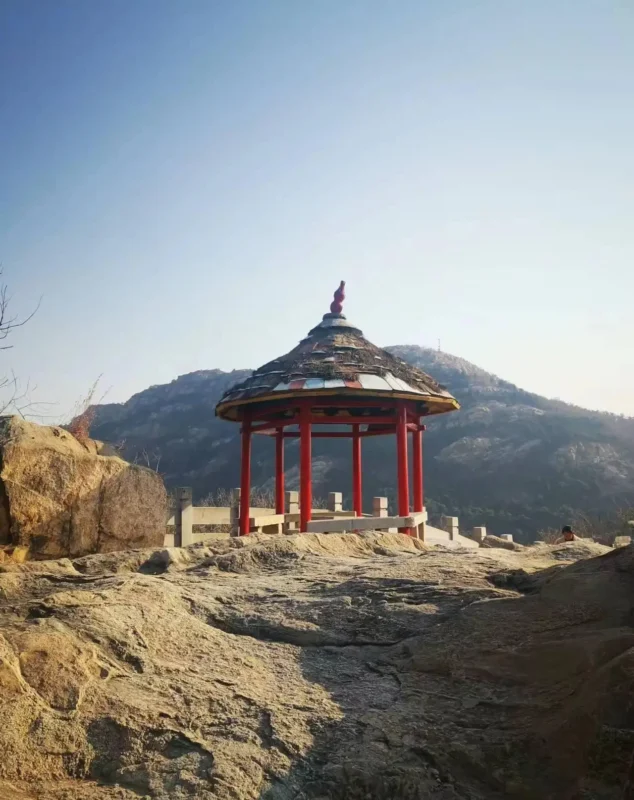 第五步:孤雲草堂→山頂涼亭(約20分鐘)。從孤雲草堂出來後,沿步道繼續上行,抵達石門山山頂,山頂設有涼亭,可供遊客休息與觀景。站在山頂涼亭內,憑欄遠望,整個石門山的風光盡收眼底,青山連綿,綠樹蔥蘢,溪流如帶,景色壯麗。天氣晴朗時,還能遙望曲阜城區的風貌,視野極佳。