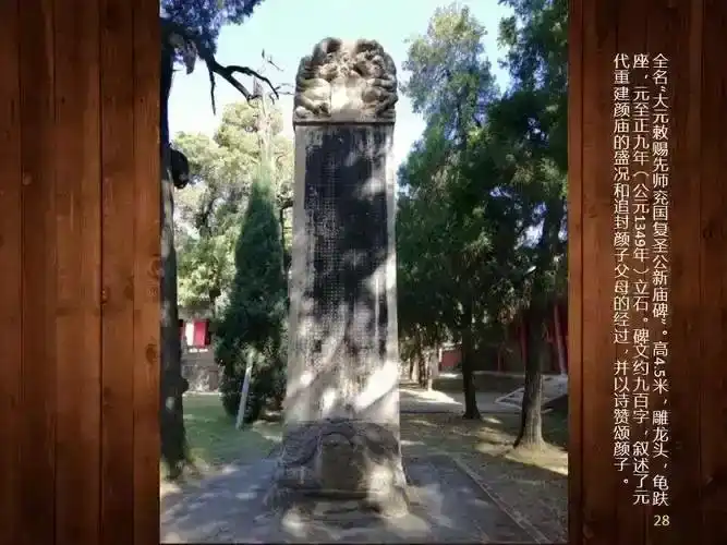 此外,顏廟內保存的56通金、元、明、清各代碑刻,是研究儒學思想演變、歷代祭祀制度、古代書法藝術的重要史料。其中,元至順二年的《大元加封兗國復聖公制詞碑》、明正德四年的《禦製重修顏子廟碑》、唐天寶元年的《兗公之頌碑》等,不僅記載了顏子封號的演變和顏廟的修復歷程,其碑文書法也各具特色,篆、隸、楷、行等字體齊全,堪稱一部石質的儒學文化史。對於文化愛好者、儒學研究者而言,顏廟是不可或缺的實地考察場所。